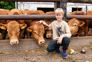 Justus is 10 and lives on a farm in Lünen. It is an organic farm. Justus wants to promote organic vegetables, which are less visually appealing but taste good, and invites his class to a tour of the farm and a blind tasting.